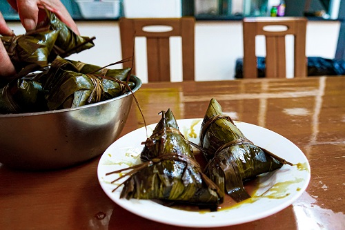 清新的粽葉香陣陣撲鼻,糯米、豬肉等食材整整齊齊地擺放在桌面(miàn)上。食堂阿姨一邊講解,一邊手把手教大家包粽子的方法。拿起(qǐ)粽葉,錯開(kāi)折疊成(chéng)漏鬥狀,放入糯米和豬肉,壓實後(hòu)把粽葉合攏,最後(hòu)用草繩將(jiāng)粽子捆紮系緊,一個大肉粽就(jiù)這(zhè)樣完成(chéng)了。