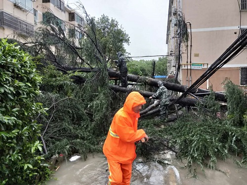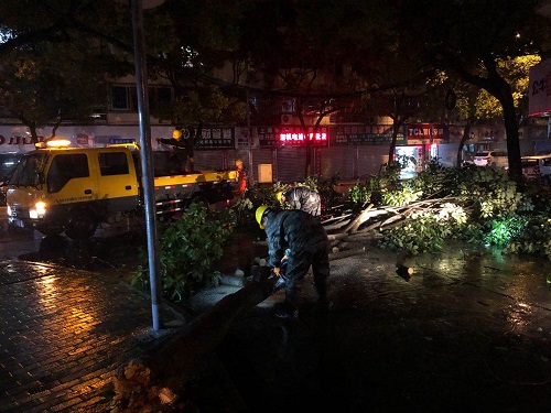 8月4日晚至8月5日,園林公司防台防汛工作人員徹夜奮戰在搶險第一線,全力搶險救援,盡最大努力保證城市運行暢通與人民生命财産安全。