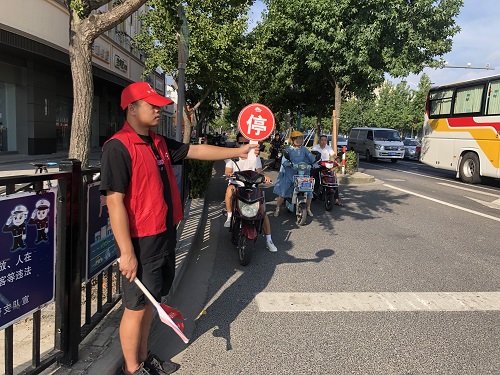 他們身著(zhe)統一的志願服務紅馬甲,頭戴小紅帽,手持文明交通勸導牌,站在停車線處,根據紅綠燈指示勸導非機動車不越線,行人走人行橫道(dào)、不闖紅燈,協助交警維持正常的交通秩序。八月的上海高溫預警不斷拉響,氣溫不斷攀升,志願者上崗幾分鍾就(jiù)已汗流浃背,但他們依舊堅守崗位,用行動傳遞文明交通理念。