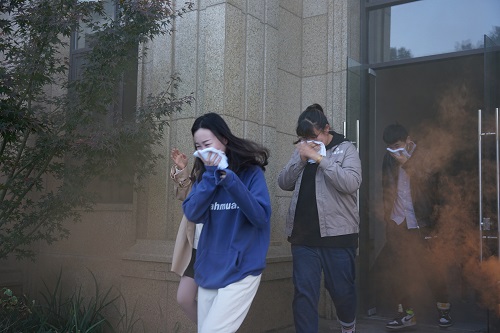 公司安全質量部副經(jīng)理郁仁歡向(xiàng)大家講解毛巾的折疊方法、捂住口鼻的要領及逃生時(shí)要彎腰低姿前行。現場使用煙霧彈模拟火災警情,演練人員遮住口鼻、低頭彎腰從公司8樓安全通道(dào)撤離至底樓安全地帶,在疏散逃生過(guò)程中,指揮小組組織有序、指揮得當,參與人員反應迅速、執行果斷,成(chéng)功完成(chéng)演練。