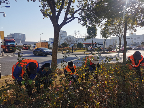 爲确保明年月季的景觀效果,奉發(fā)園林公司持續開(kāi)展月季冬季養護工作。
