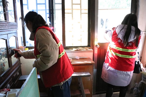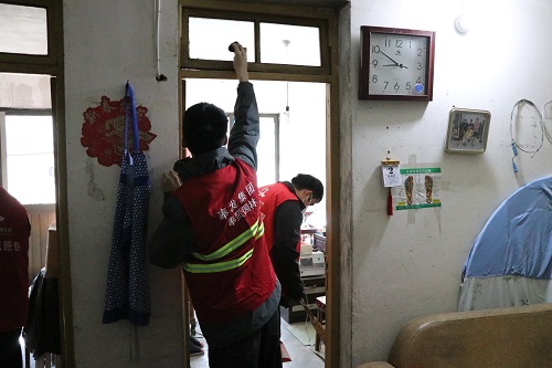 志願者們積極行動,耐心細緻清掃獨居老人家中的各個角落。同時(shí)在打掃衛生之餘,志願者們與老人促膝談心、聊家常,了解他們的生活情況,爲獨居老人送上暖心服務。